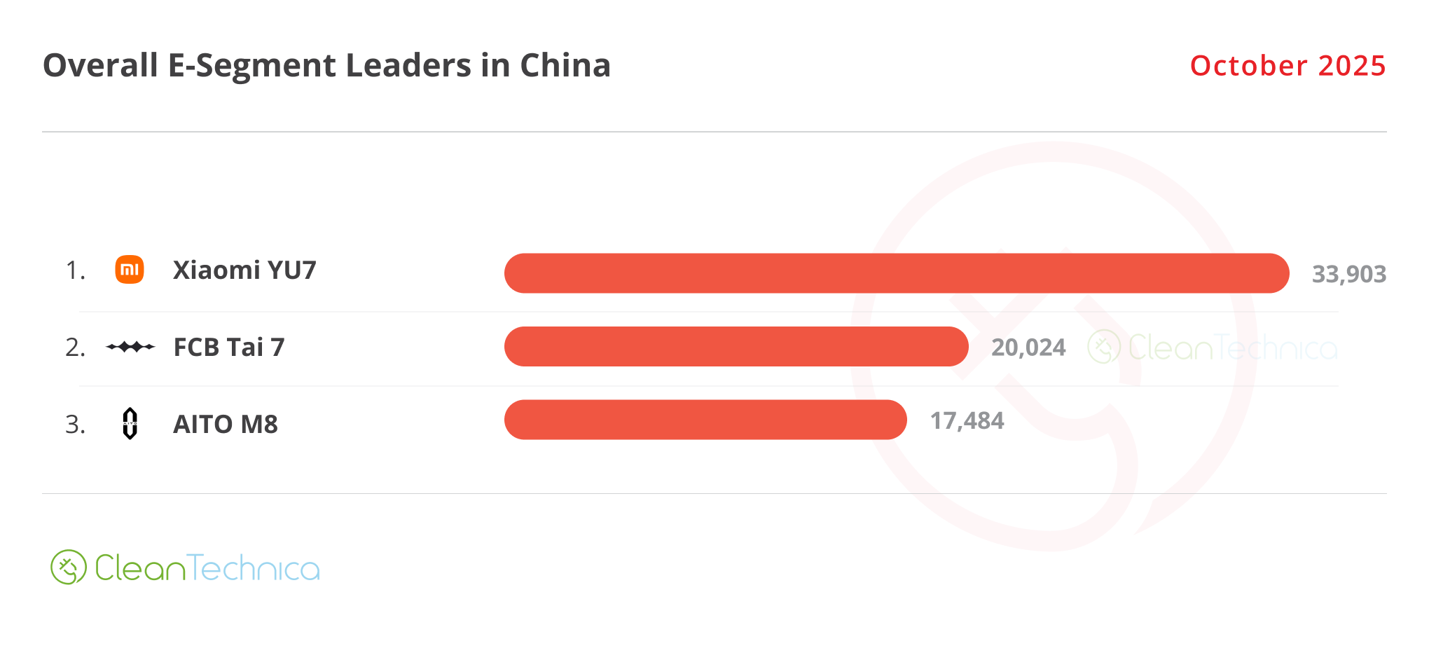 This year’s most anticipated model, Xiaomi’s YU7, surged to 33,662 deliveries as its production ramp-up continued. The YU7 got hundreds of thousands of locked-in orders within hours. Those orders have to come from somewhere, and with the market already at 50% share, it won’t be just from ICE models…. Yep, all top EV players that have midsize to full size SUVs are feeling the gravitational force of the YU7, a model that will surely collect plenty of podium presences (and wins?) in the coming months. This 4th position is just the beginning….
