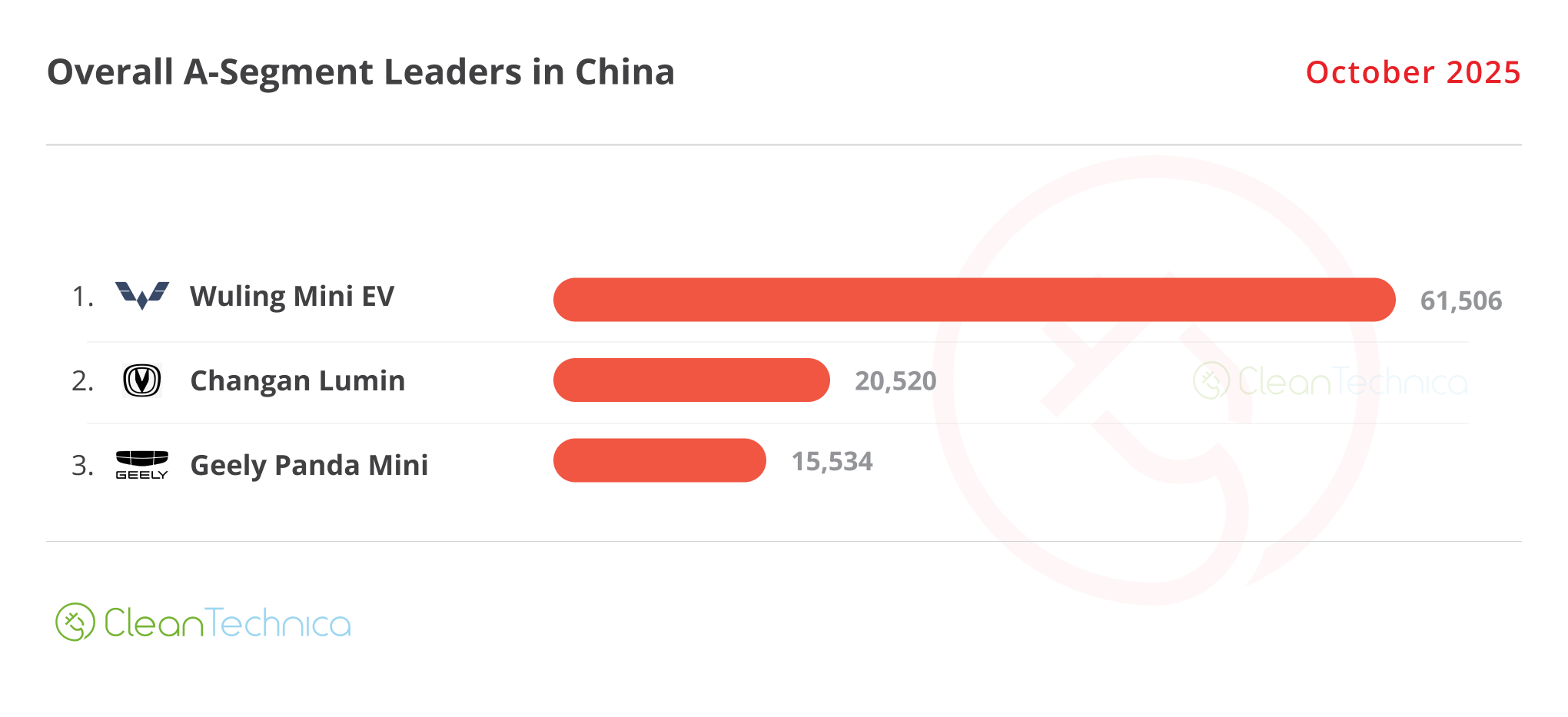 Looking at the overall manufacturer ranking (not just electrics), it seems BYD has found the demand ceiling in its domestic market. October was another month in red, as it saw its sales crash by a significant 38% YoY, to some 255,000 units, the fourth month in a row of drops.