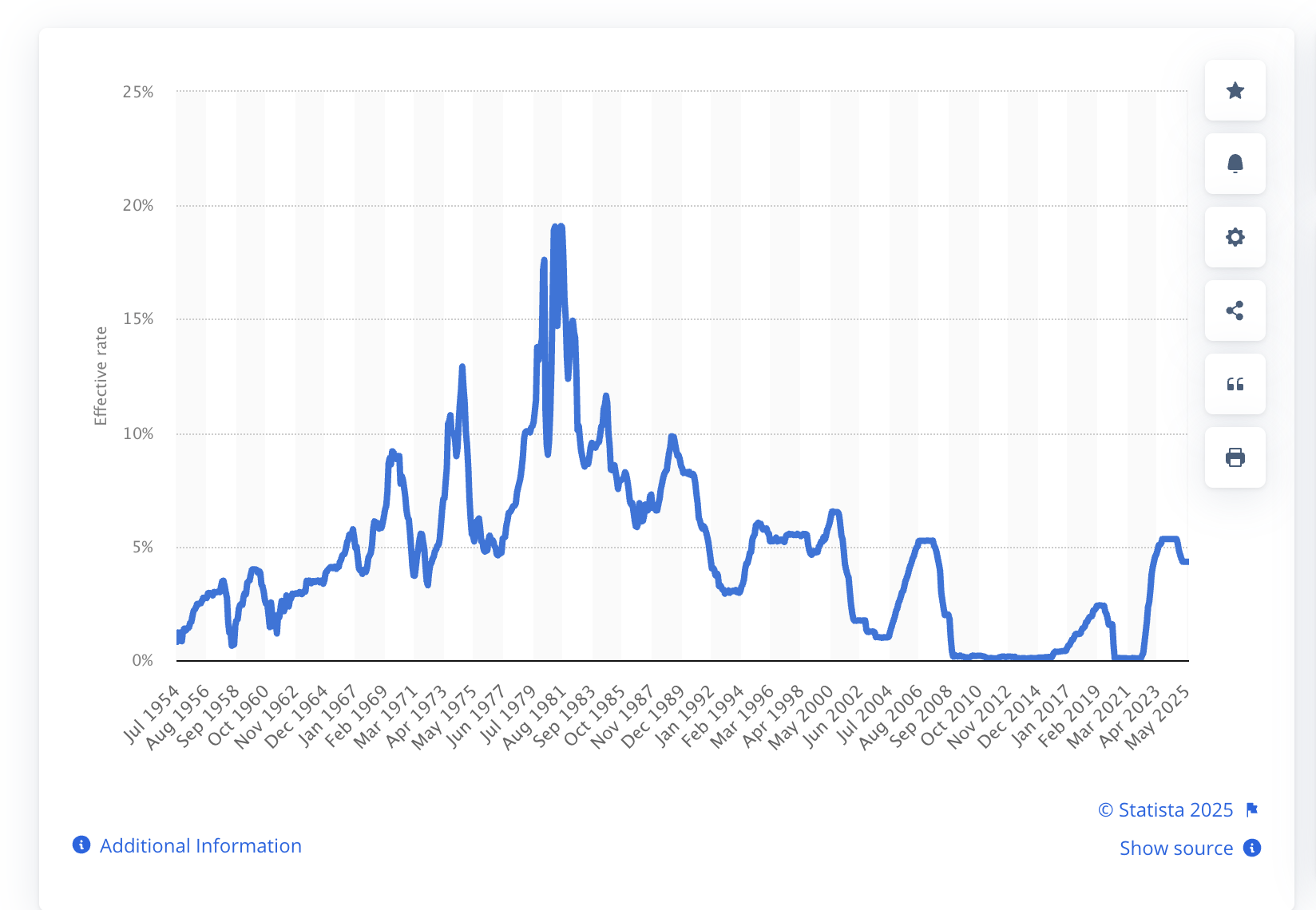 The central bank ultimately drove rates to 5.5 percent. Most people perceive this as a high-interest-rate environment, given the decades of artificially low rates. But from a historical standpoint, that peak was slightly below the historical average.