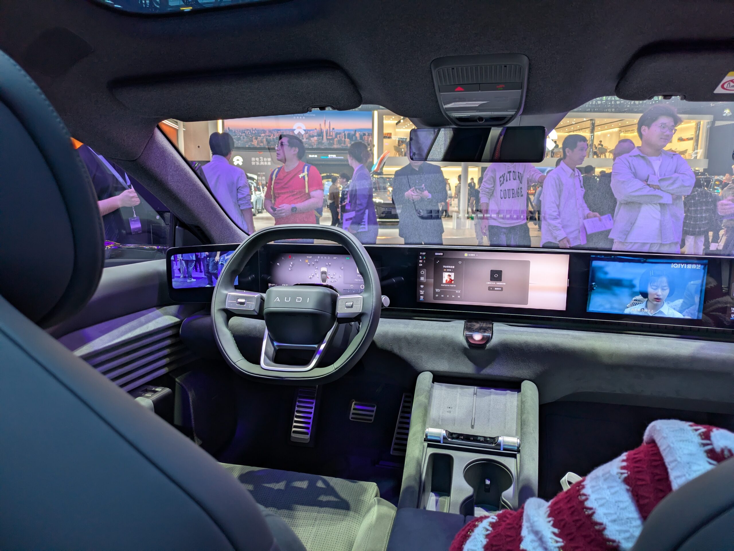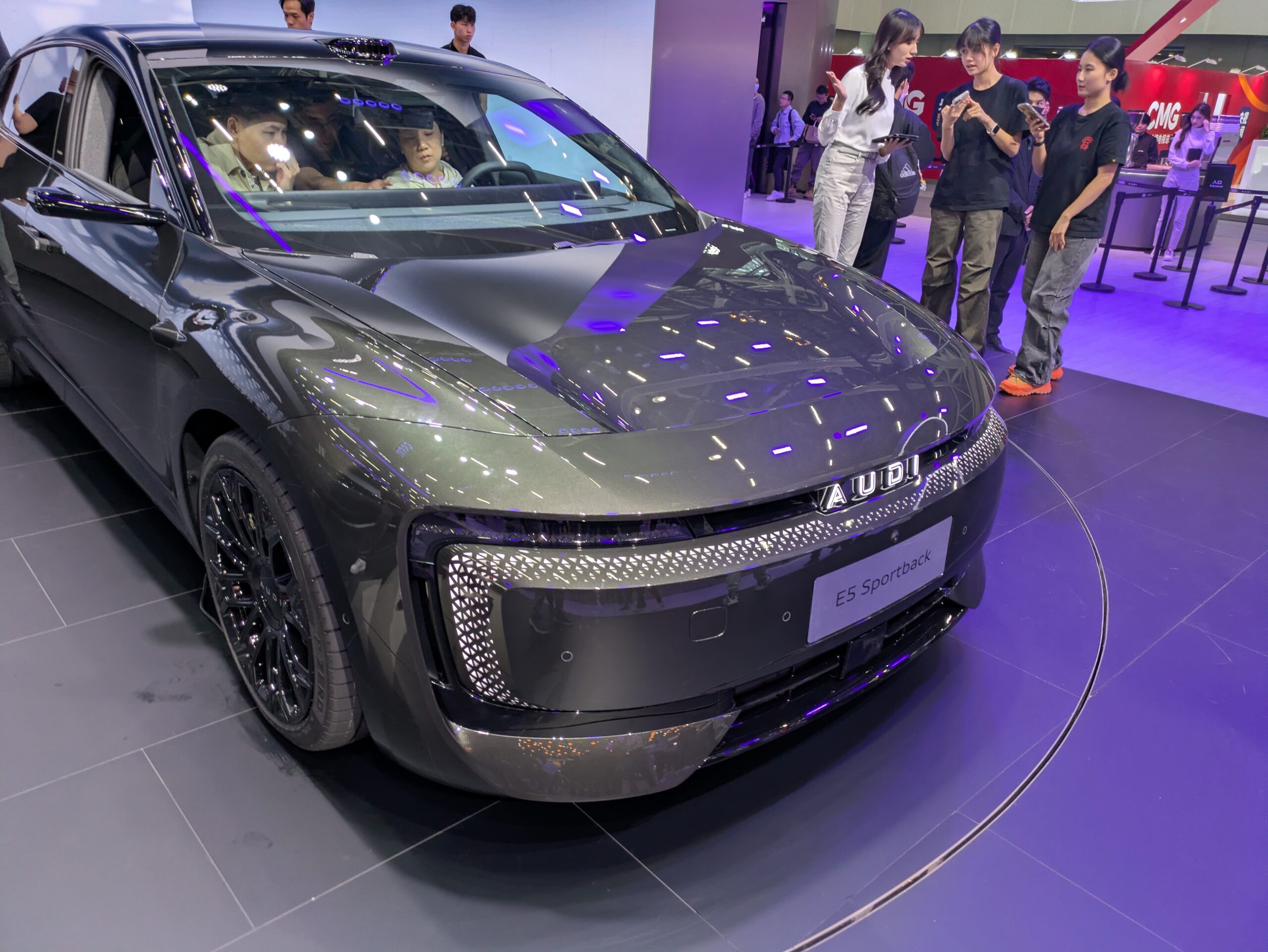 The streets of Guangzhou are dominated by Chinese branded cars with green license plates (signifying that they are NEVs, or new energy vehicles). The smaller number of blue plates (ICE) are largely older American, Japanese, and German brands, with a significant share coming from Volkswagen Group’s Audi. According to several industry peers in China, Audi has struggled to build EV sales in the fiercely competitive market. The major Chinese brands in the premium segment all offer powerful, high-quality EVs loaded with technology and features. However, Audi deepened collaboration with SAIC to develop the new AUDI sub-brand (all caps, without the four-ring logo) to meet the challenge, and the vehicle was heavily promoted at the show.