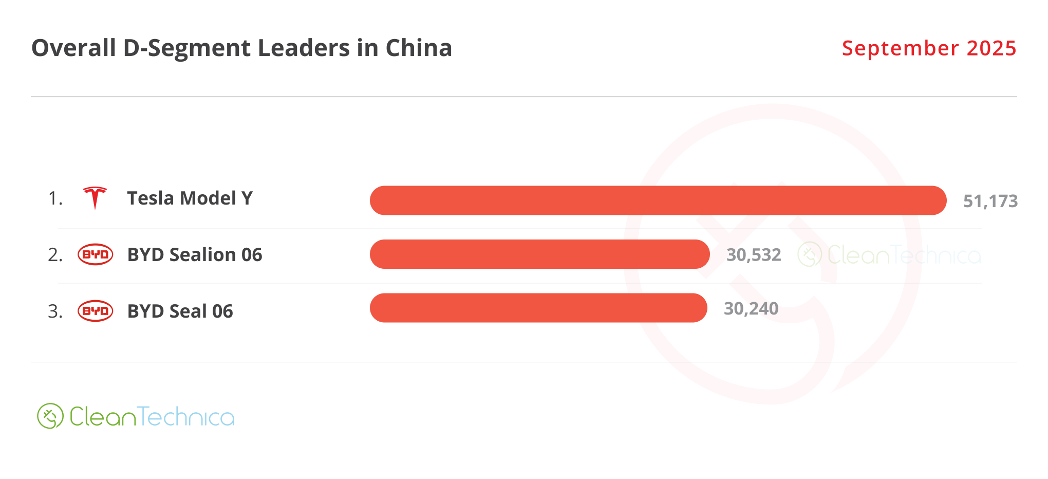 Elsewhere, while the Wuling Mini EV (A segment) and Geely Xingyuan (B segment) dominate their categories, the BYD Song has disappeared from the midsize podium, giving way to the recently introduced BYD Sealion 06, which now has the role of racing against the Tesla Model Y.