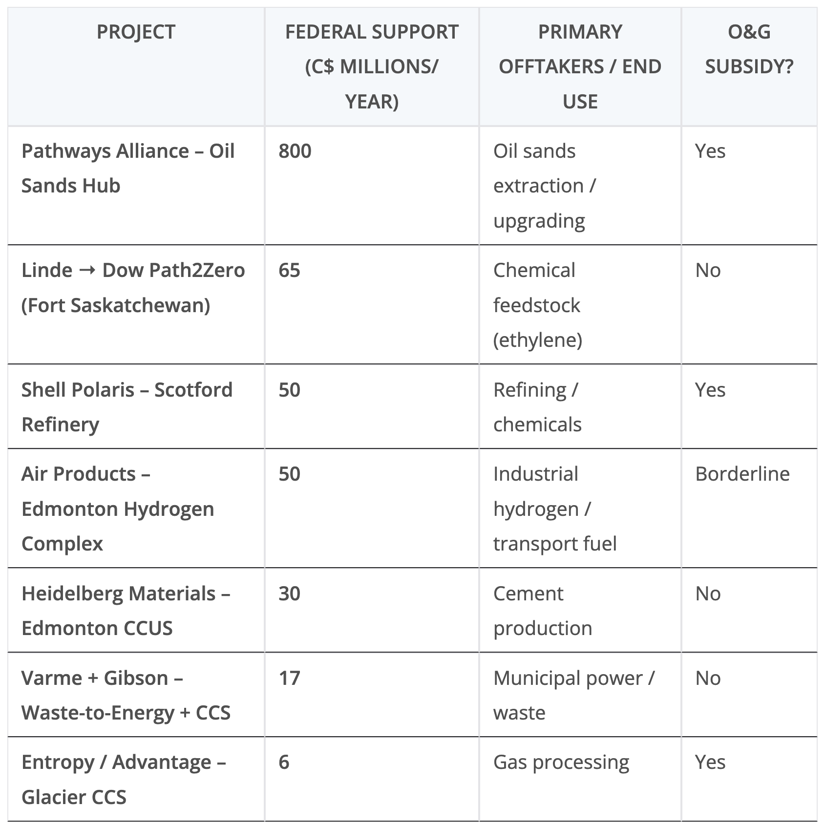 The balance of spending reveals the structural bias of Canada’s energy transition. Legacy producers have the scale and engineering depth to move first and claim the largest credits, while process industries that actually need carbon capture remain smaller and slower to act. The tax system rewards capital expenditure, not abatement cost per ton. Without reform, the biggest share of federal support will continue to flow to projects that preserve existing fossil infrastructure.