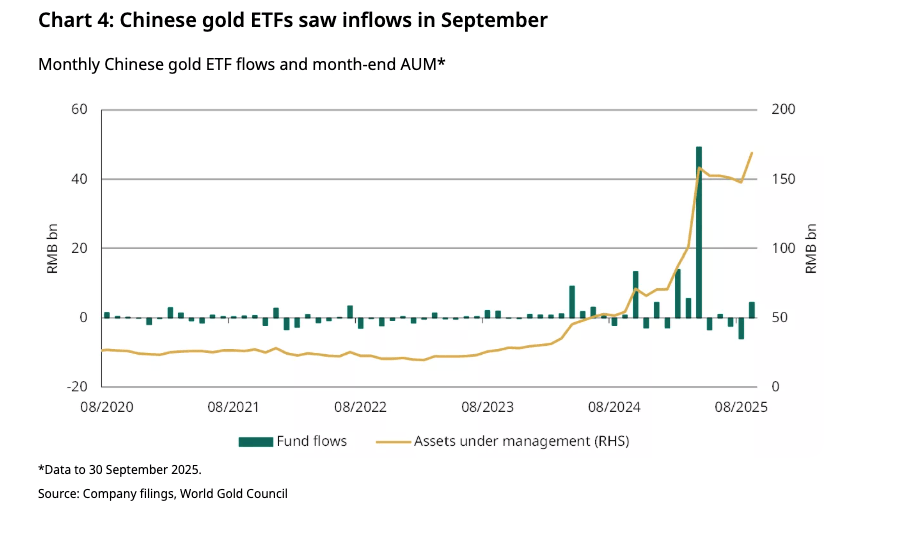 After two consecutive months of outflows, gold once again flowed into Chinese ETFs last month.