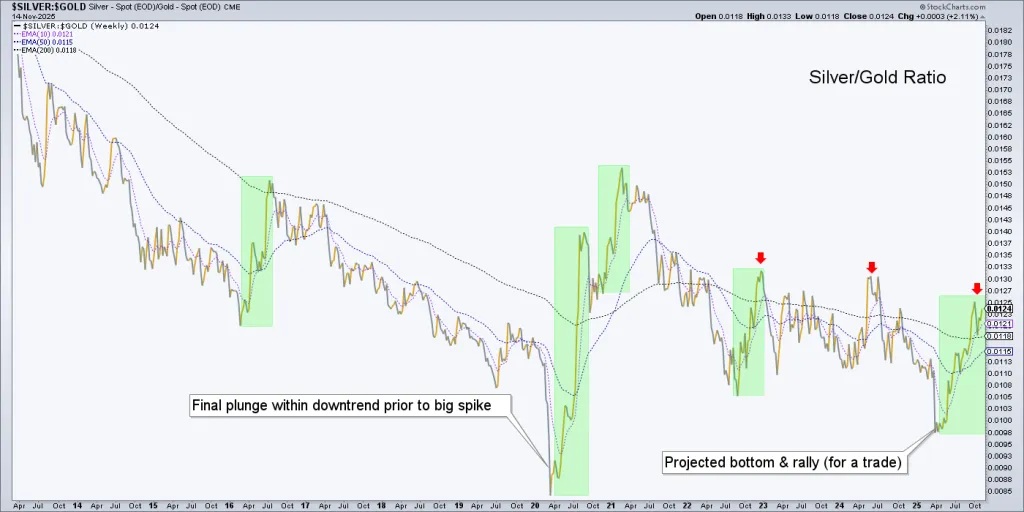 The interim will be guided by indications like the Silver/Gold ratio (SGR), among others. NFTRH 889 took an extensive look at the SGR, the caution point it currently resides at (an extreme within an intact downtrend), but also the future it portends.