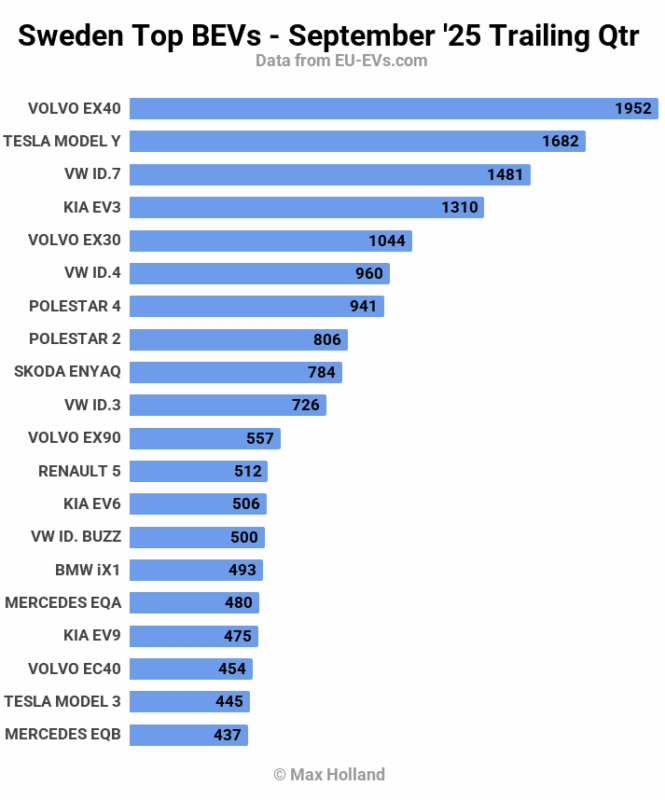 September has historically been one of Tesla’s biggest months of the year in Sweden, and this year was no exception, with the Model Y seeing its highest volumes of 2025 so far, with 1,425 units.