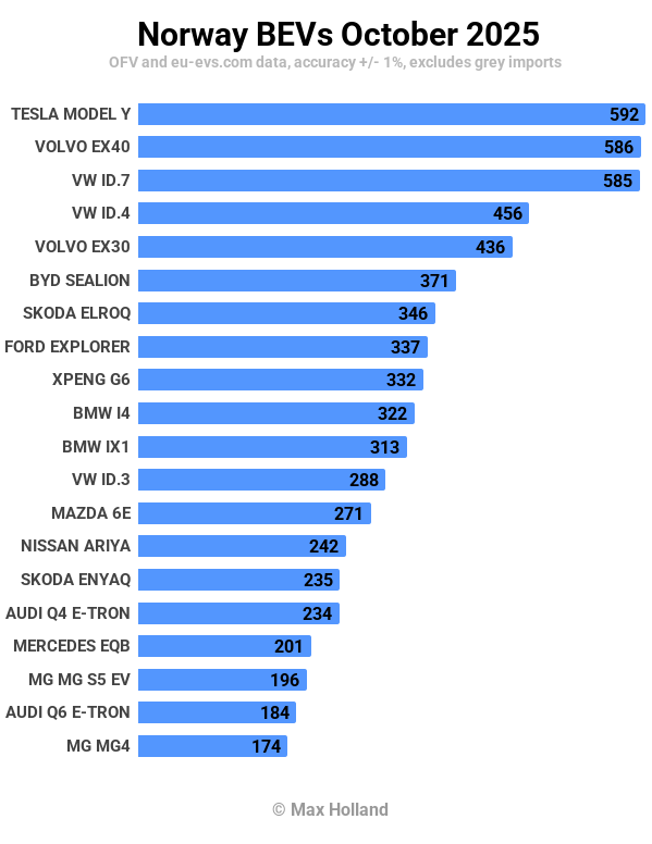As mentioned above, with tighter VAT rules arriving on January 1st, there will be a pull-forward of mid-priced (and high priced) BEV sales in the next two months. Then we will see a hangover for a few months in early 2026.