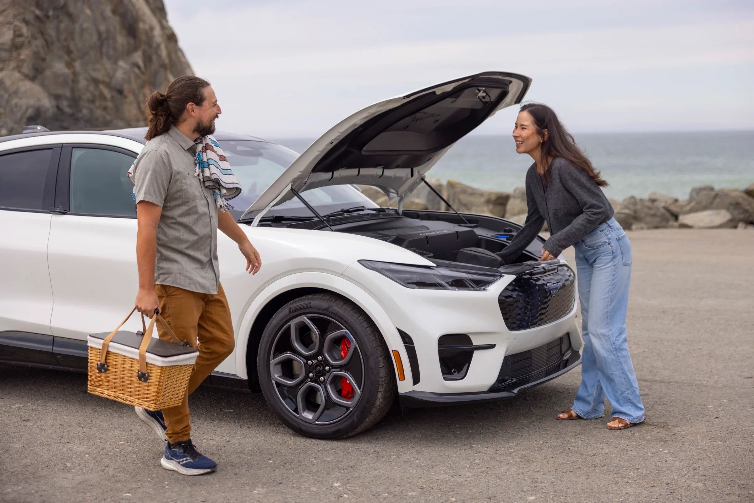 As Ford tells it, the focus on EVs and California has trickled up through the grassroots Mustang community. The California Special design team was spearheaded by Stefan Taylor (exterior) and Kristen Keenan (color and materials). Both are Mustang owners who draw inspiration and insights from their frequent in-person connections with Mustang fans at car shows and meetups. They have been hearing from the Mustang community, and the message goes something like this: We love EVs, and we love California, so give us a new California-themed package for the Mustang Mach-E GT, please.