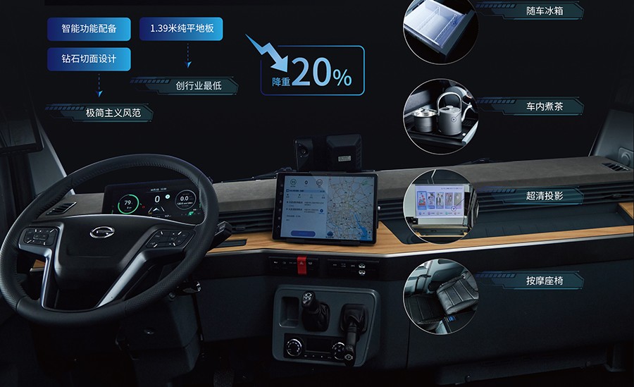 Effort has gone into lightweighting, with only 8.9T of the total 49T GCWR coming from the vehicle itself, claimed to be the lightest in the industry. This is due to a “composite material skin, steel-aluminum hybrid frame, high-strength steel cab” with “CAE topology optimization design of chassis components.” The drag coefficient of the flat nose truck is 0.4, which is impressively close to the much longer Tesla Semi at a claimed 0.36 in its most efficient configuration. However, semis are limited to 80 km/h (50 mph) on national highways, and up to 100 km/h (62 mph) on some expressways in China, which reduces the impact of aerodynamics compared to the much higher speeds in the US.