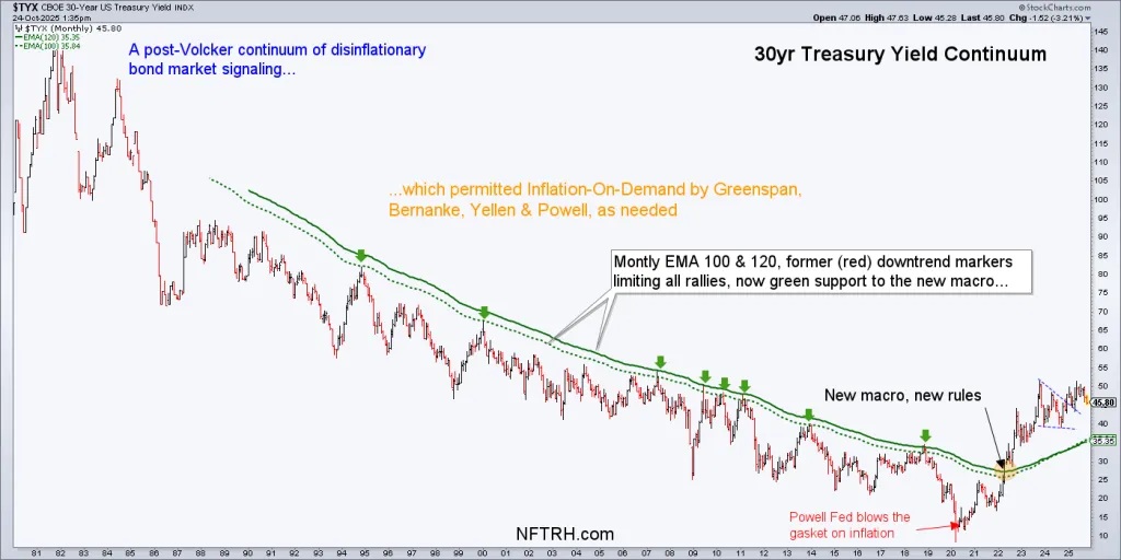 He’s actually channeling Harvey & Erb. Creating a rule that gold must remain in relation to traditional bond market signals about inflation or lack thereof. It is conventional analysis that assumes what was ( a disinflationary downtrend in long-term yields until 2022) still will be. It isn’t and it won’t.