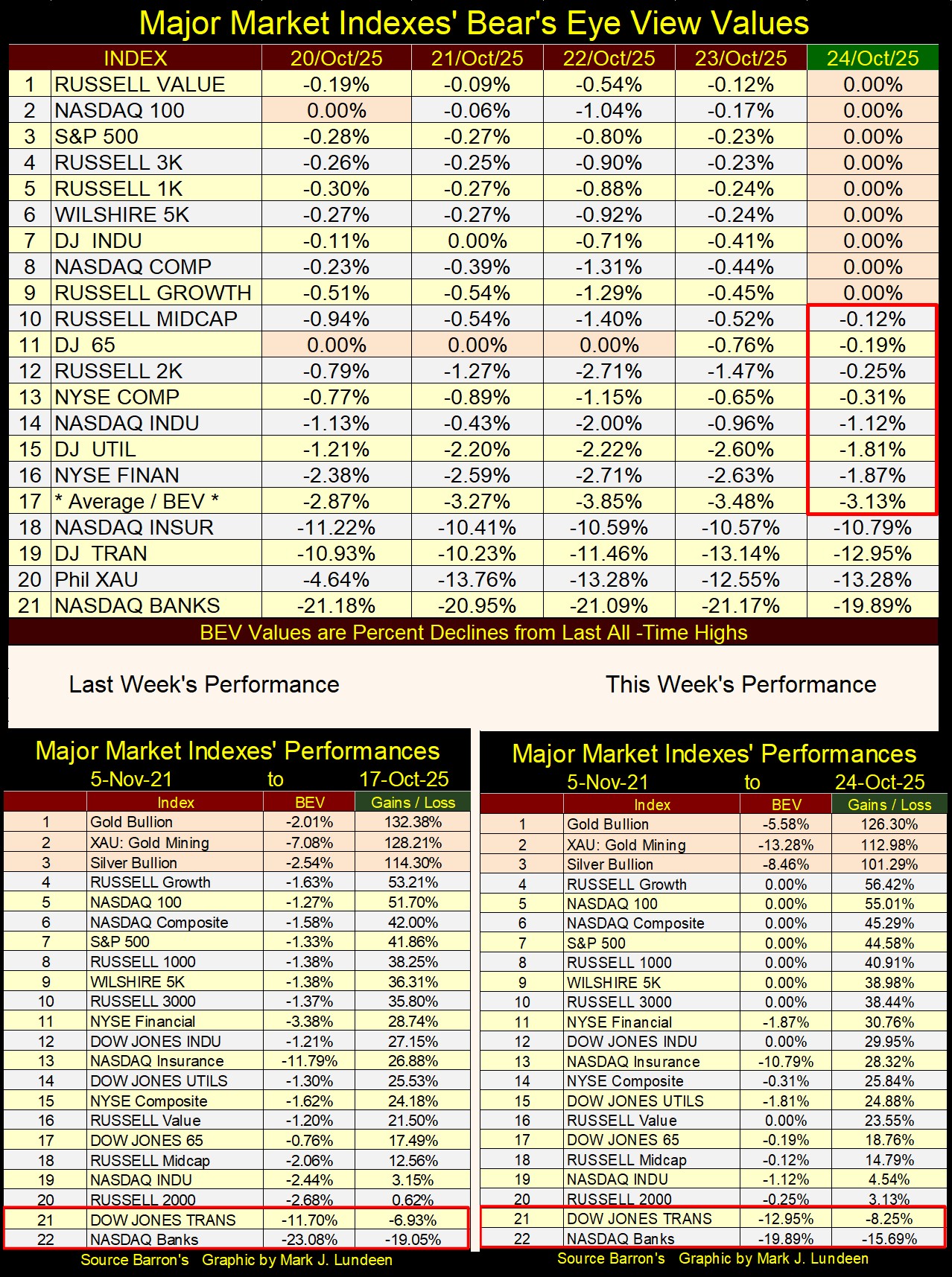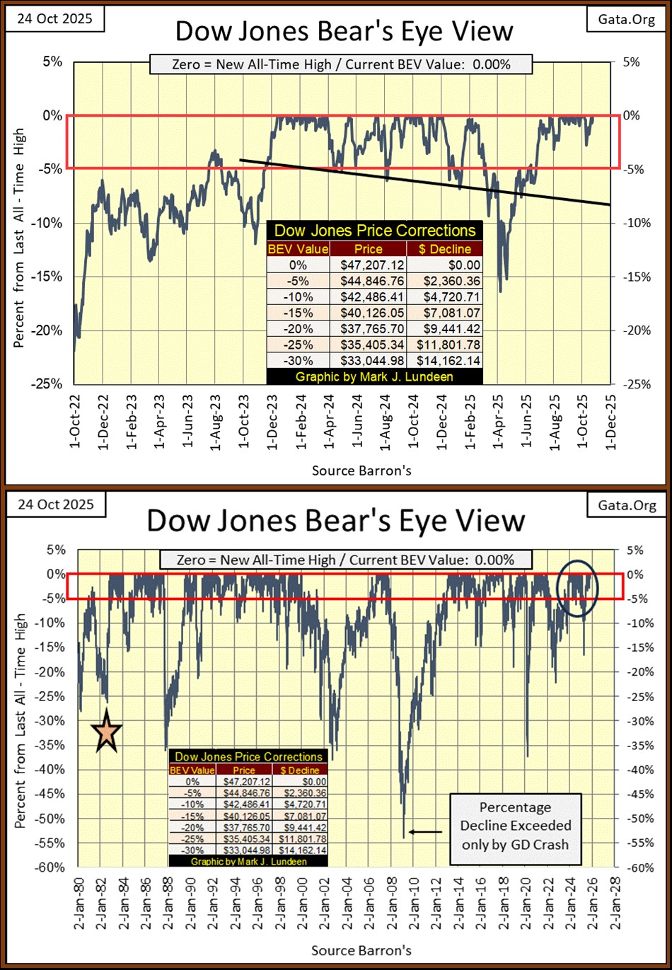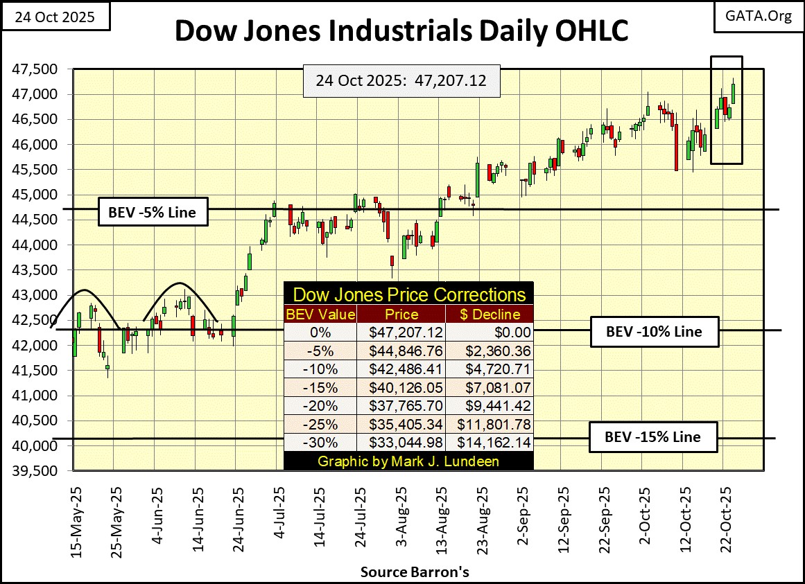 Well, I don’t think we’ll see Dow Jones at 50K until sometime next year. If then, as there are a lot of things that could stop that from happening. So, what else is there to say about its Bear’s Eye View chart below? Let’s keep it simple; as long as the Dow Jones remains in scoring position, between its BEV 0.0% & -5% lines (within the red rectangle), the Dow Jones remains in a bullish advance. That being so, we should expect additional all-time highs in the Dow Jones in the weeks to come.