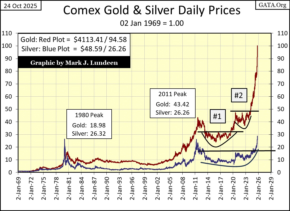 In late October 2025, I believe gold, silver, and their miners’ prospects for capital gains in the decades to come, far exceed those of the Dow Jones and NASDAQ Composite seen above.