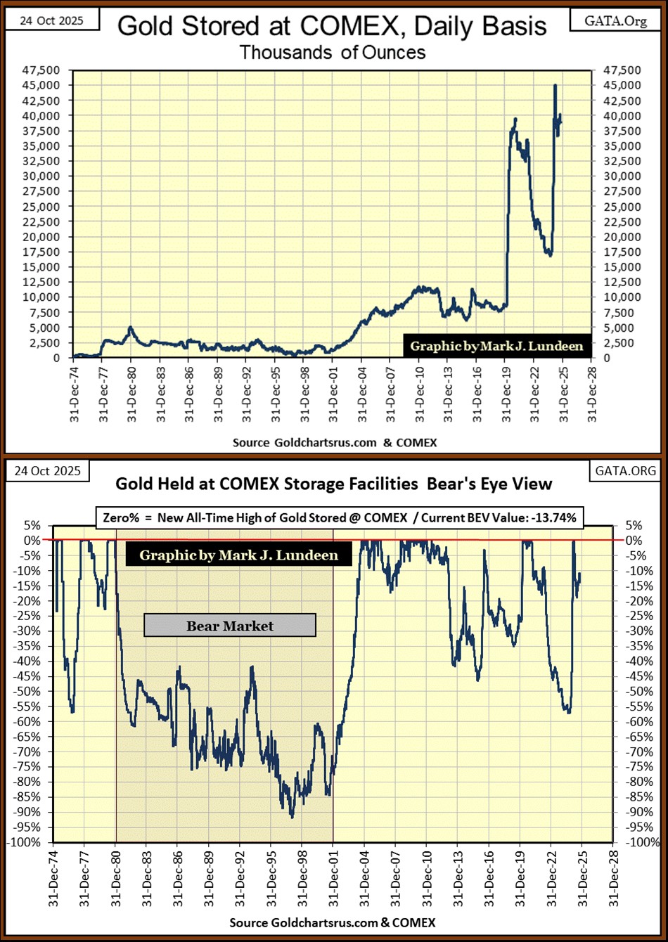 Above is the Bear’s Eye View of the gold inventories at the COMEX storage facilities. The data is the same as seen in the top chart, just looking at it in the Bear’s Eye View.