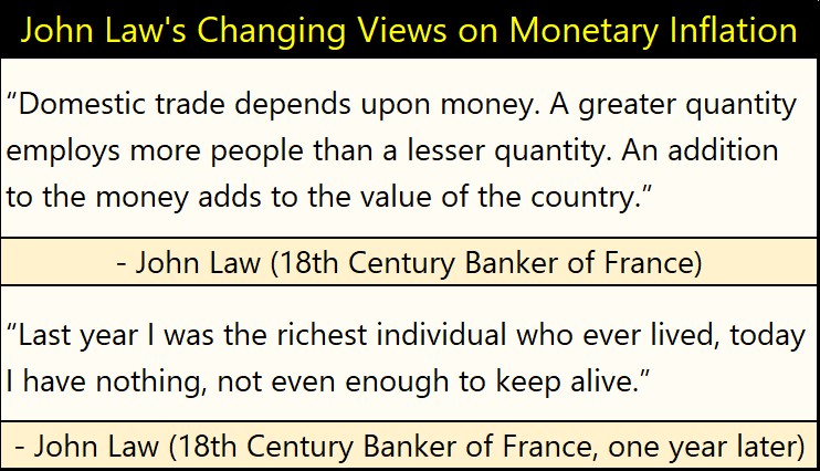 The study of monetary history may not be as widespread as I would have it, but to those at the top, they know the history of paper money very well. And once monetary inflation becomes the “monetary policy,” it ends only one way; inflationary booms always turn into deflationary busts, as John Law discovered in early 18th century France.
