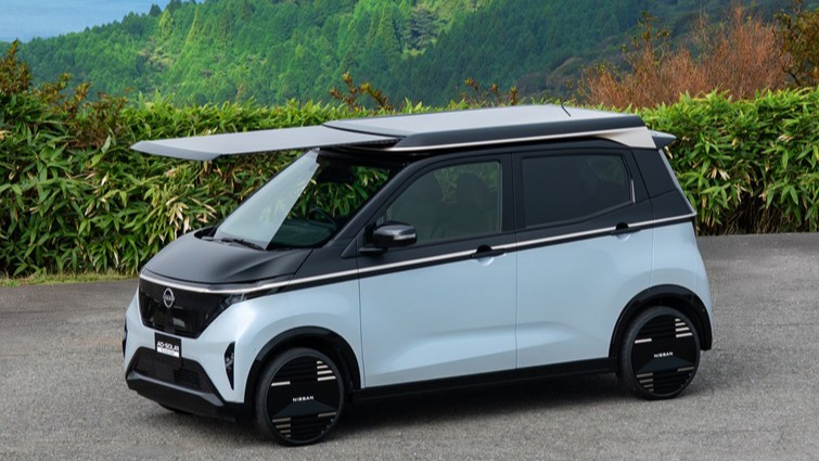 In addition, Nissan is showcasing a version of its Sakura, the best-selling EV in Japan, with a retractable solar panel. With the vehicle parked and the solar panel extended, it can generate up to 500 W. When driving, the maximum output would be 300 W. On a typical ICE vehicle, I have not been a fan of rooftop systems. Research shows that the increased drag of roof racks or even streamlined roof-mounted cargo boxes would easily overcome the relatively small amount of energy generated, particularly for vehicles run on the highway, with aerodynamic drag going up exponentially with speed. However, for low-speed, short-distance driving in a lightweight car, the solar panels might actually provide a net benefit.
