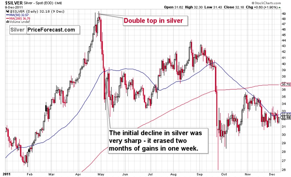 But, given this kind of volatility, getting out a few days ahead or even a week ahead of the top doesn’t change that much, as the same – or (more likely) even bigger – volatility will be seen on the downside, and the rally that we see right now will be erased very quickly. Remember what happened in silver in 2011 – two months of gains were erased in just a week.
