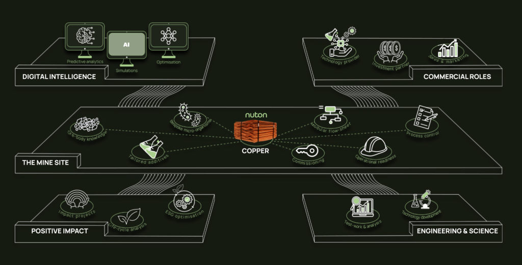 Nuton operates as both a technology provider, licensing tailored solutions, and an investment partner, backing projects with flexible commercial models that enable growth and shared value. Across all deployments, Nuton is committed to producing copper with the lightest environmental footprint and pursuing a Positive Impact ambition: to give back more than it takes across five pillars—energy, water, land, materials, and society.