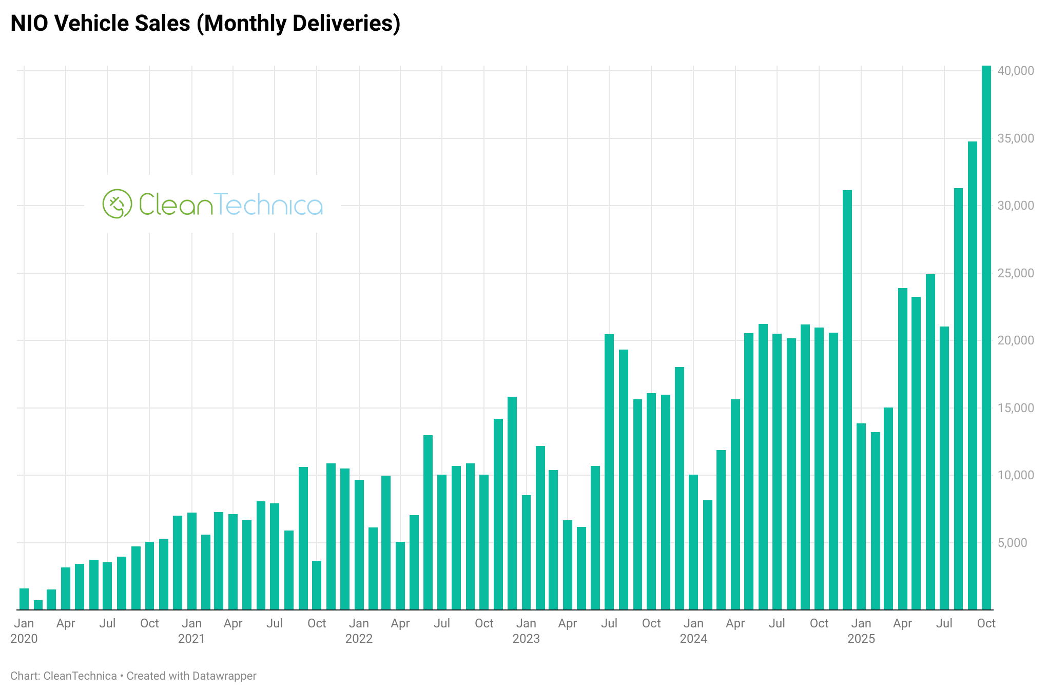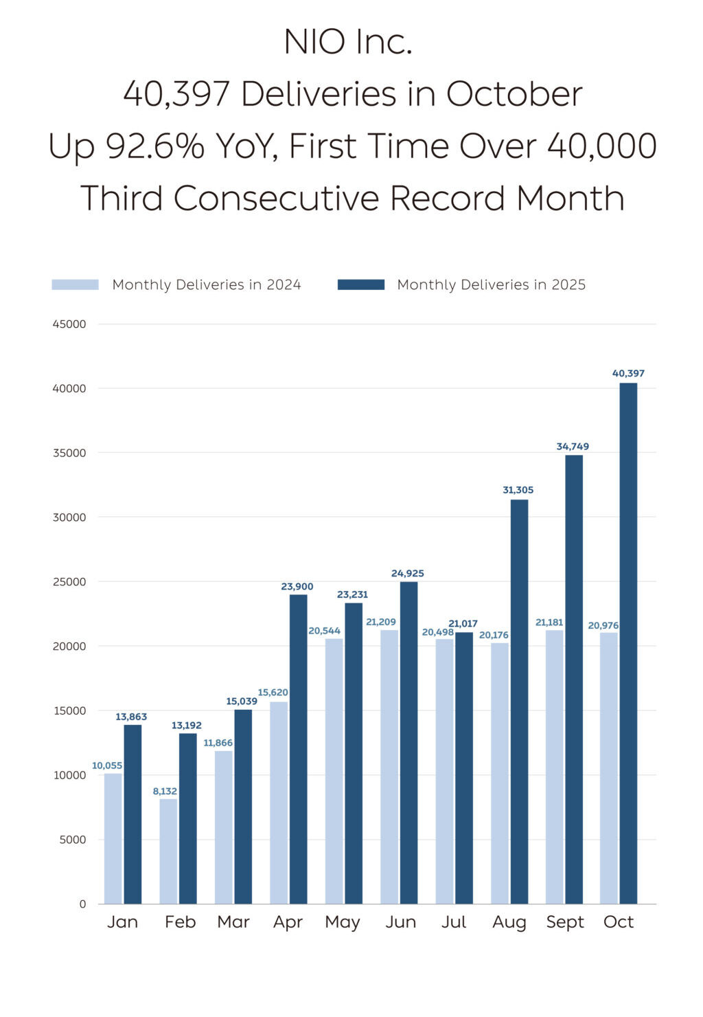 In the end, NIO scored 40,397 deliveries, 92.6% more than in October 2024. This was the brand breakdown: