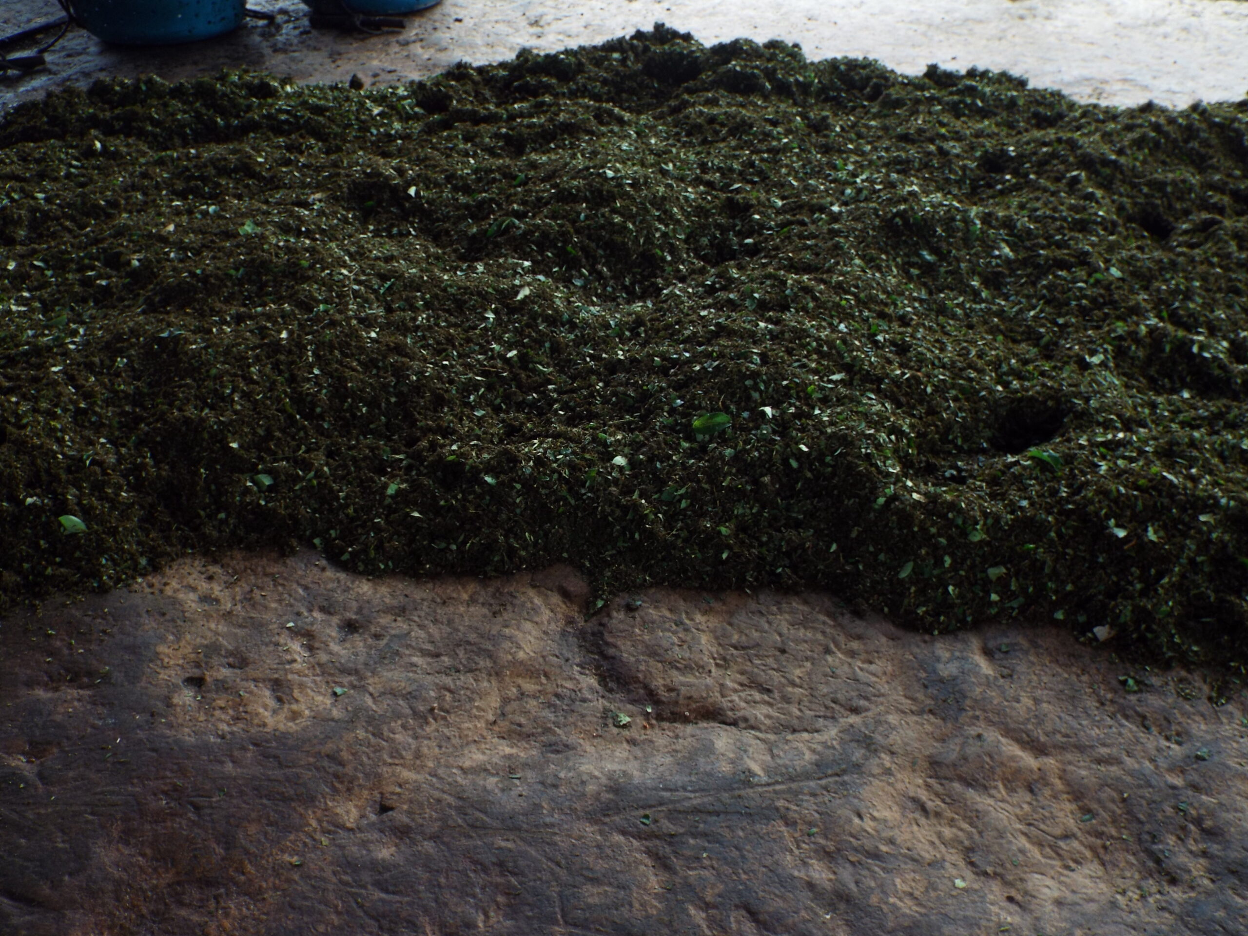 Coca leaves being processed to extract base-paste. Credit for the picture goes to Laura Catalina Oviedo.