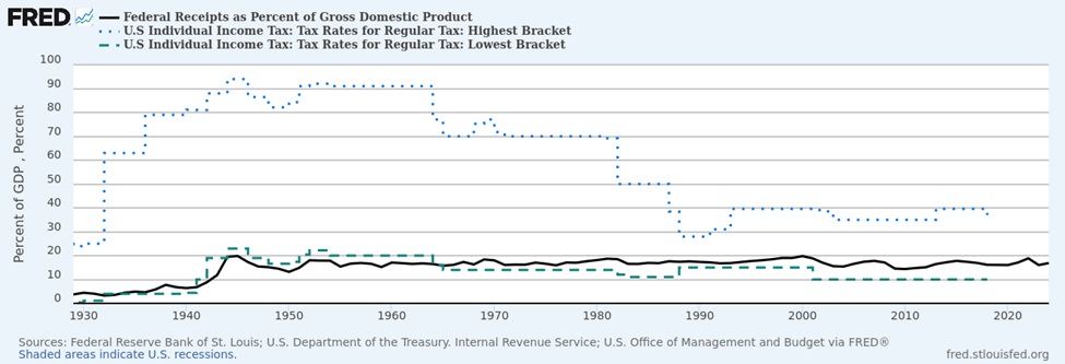 Figure 1—Federal income tax rates (percent) and federal receipts as percent of GDP