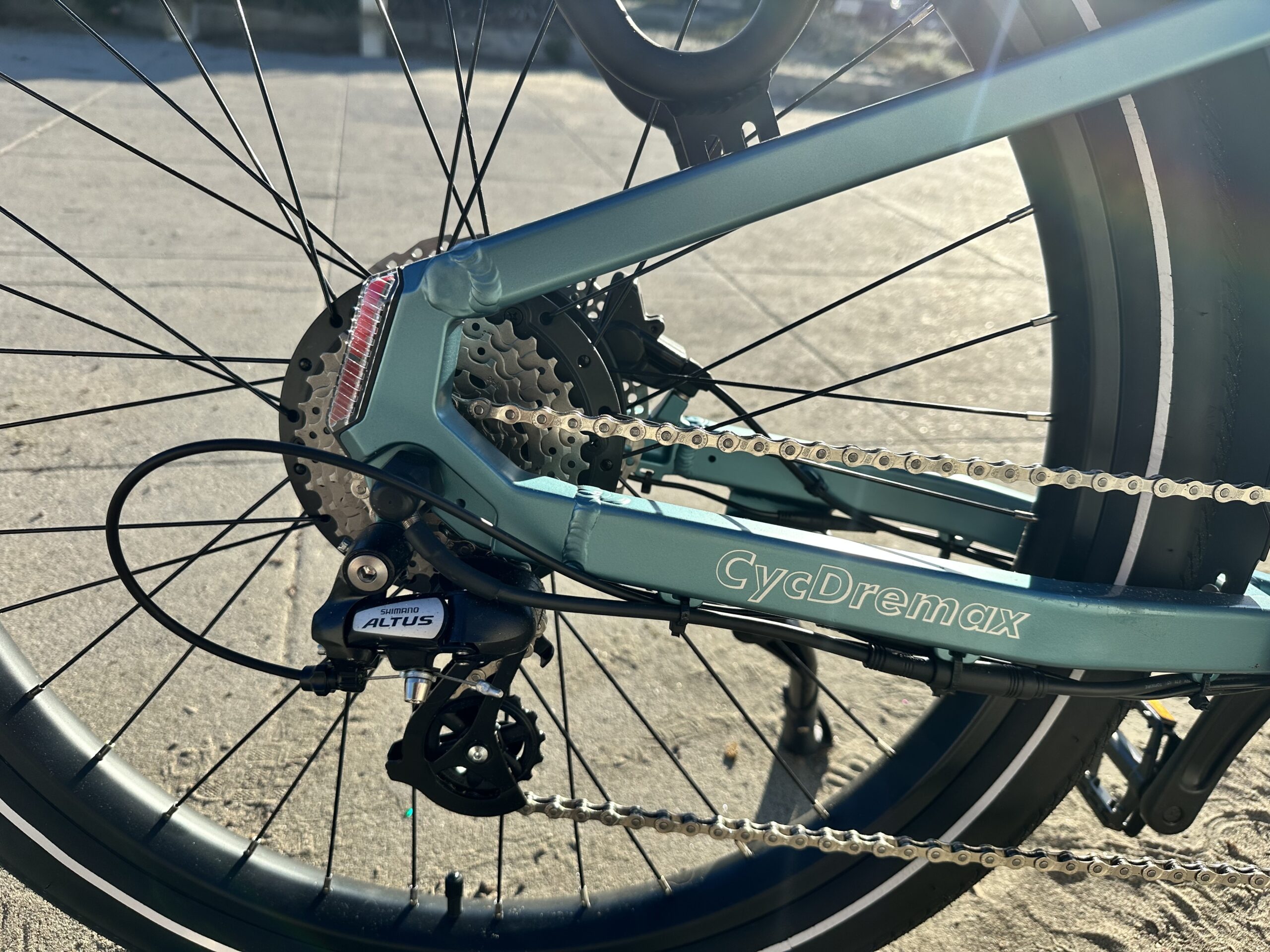 On to my experience with the Dremax step-through model. I’m typically an analog cyclist, riding a rather beat up, steel street bike along the bike lanes of San Francisco, though I’ve tested and reviewed many e-bikes at this point. The Dremax might just be the comfortable e-bike I’ve tried, along with being a downright attractive bicycle. This isn’t always the case with commuter e-bikes, especially, as they can be pretty nerdy looking.