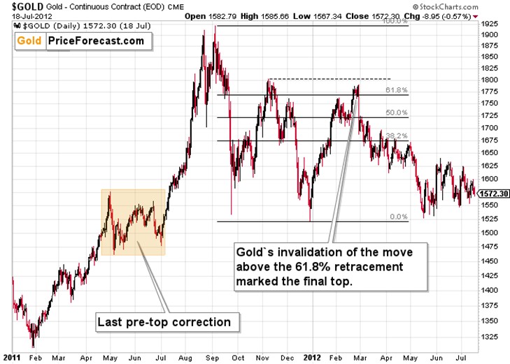 It’s likely that the top is already in, but if it isn’t, then I don’t expect gold to go beyond its previous November high. The latter would be in tune with what gold did in 2011.