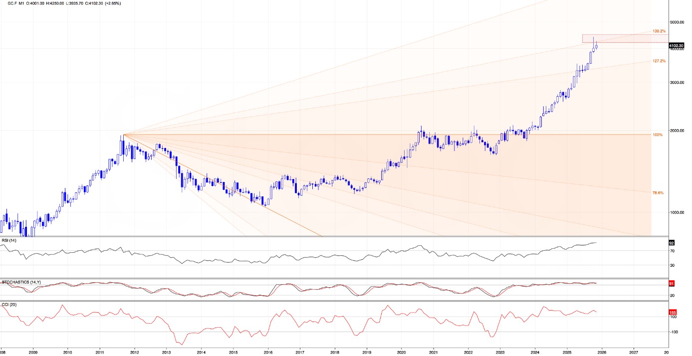 And on the monthly chart? There’s a geometry that’s quietly been guiding price for years – a Fibonacci fan drawn from a time most have already forgotten.