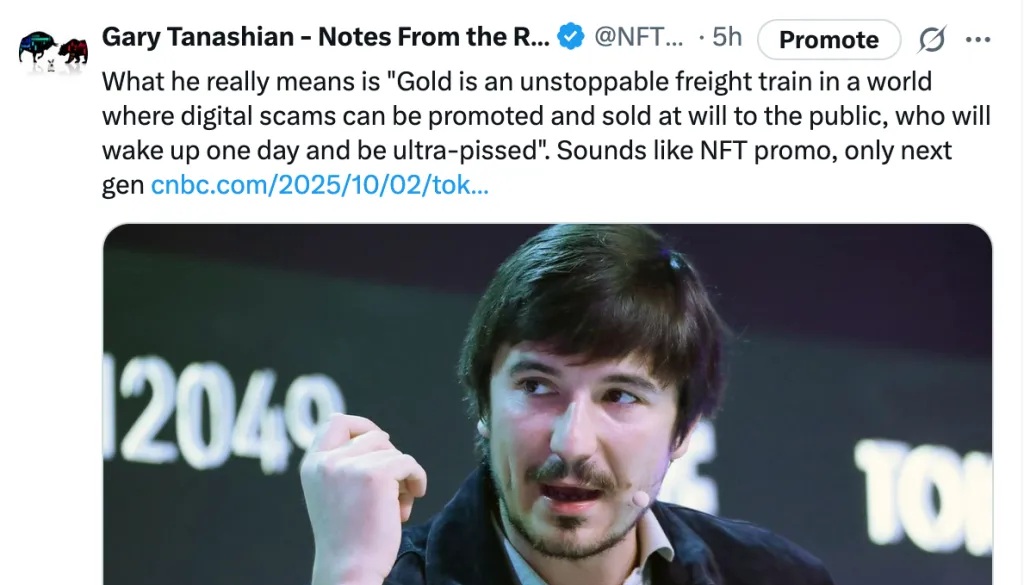 That is the system we currently have, but which in my opinion is already dead and buried. It just doesn’t know it yet as the media continue burping up stories like the above. Tokenization is an unstoppable freight train. Ha ha, that’s a good one. So was the NFT joke a few years ago. Hello? Now they want to tokenize “real world assets”, whatever that means. Great pitch, sir!