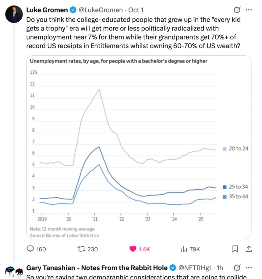 Society is coming apart and so is its old system of debt>print>spend. But legacy financial media are not equipped to discuss that, so people and concepts like the guy above will be promoted because… that’s what media do. They reinforce what is popular.
